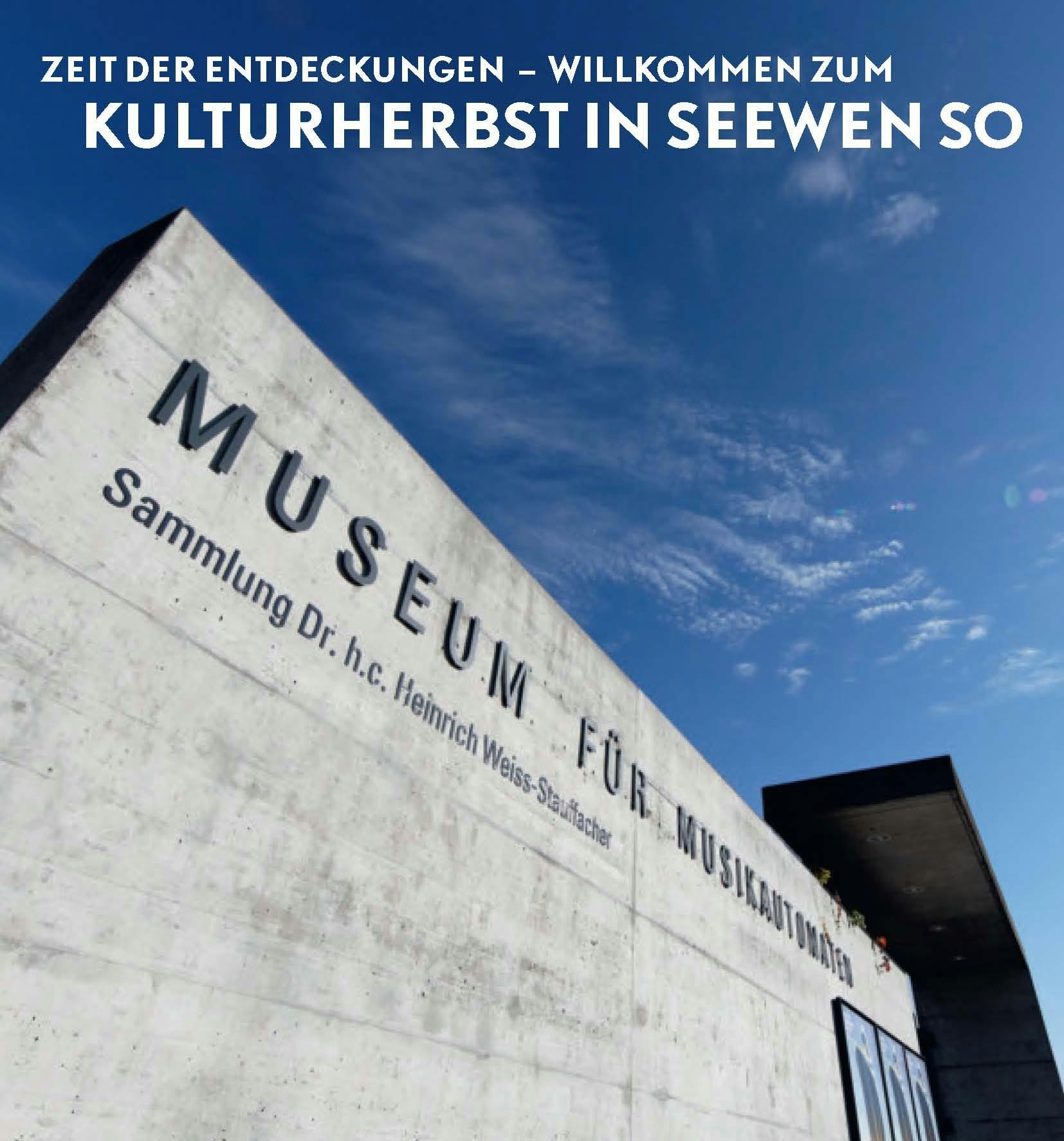 Bereits zum zehnten Mal jährt sich 2012 der «Kulturherbst in Seewen». Freuen Sie sich auf unvergessliche Erlebnisse für Ohren und Augen im Museum für Musikautomaten!
