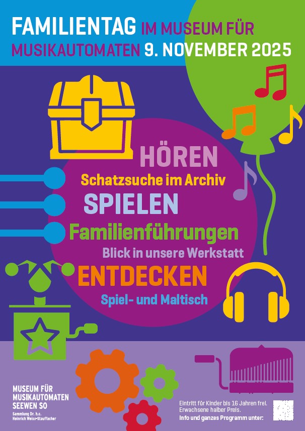 Am 9. November erwartet Sie im Museum ein Tag voller interaktiver Erlebnisse für die ganze Familie. Kleine und grosse Besuchende haben die Möglichkeit, die faszinierende Welt der Musikautomaten zu erleben und Vieles selbst auszuprobieren.